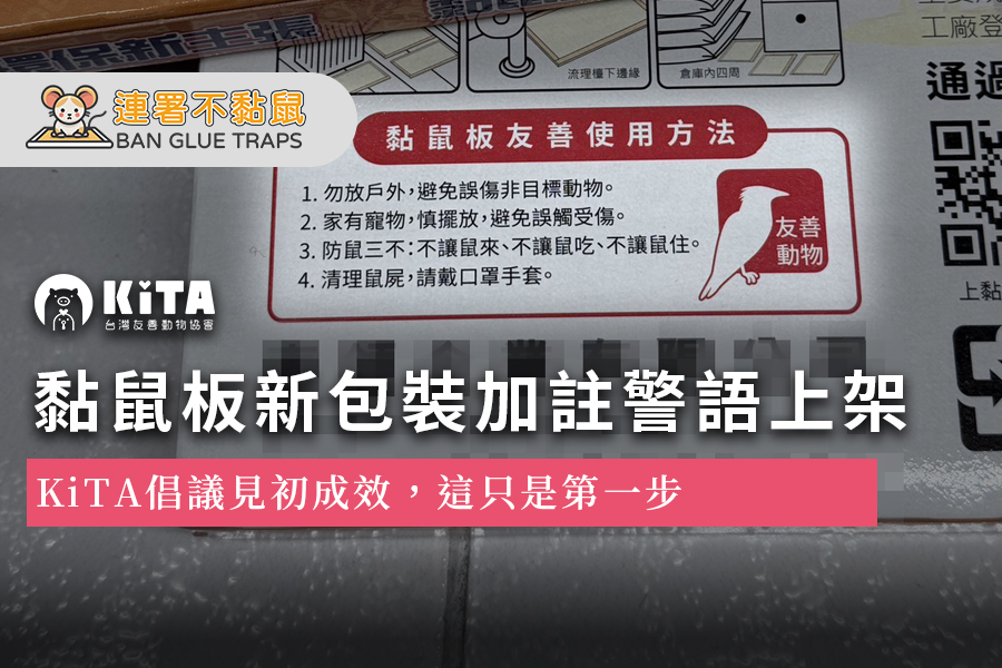 黏鼠板包裝加註警語上架,我們看見改變的一小步 最近,我們走進五金行與五金百貨,一排一排看著架上的商品。然後,我們看見了,黏鼠板的新包裝,已經開始加註警語。 這不是一件理所當然的事。這是KiTA台灣友善動物協會長期跟農業部與相關業者倡議、對話與溝通後,好不容易得到共識與妥協,慢慢推動出來的改變。 多年來,黏鼠板被視為便宜、方便、隨手可得的滅鼠工具。但在這樣的「方便」背後,其實存在許多被忽略的問題。我們之所以持續推動管制,是因為這不只是動物福利議題,也關乎公共衛生與制度責任。 為什麼我們主張應管制黏鼠板? 一、過程殘忍 黏鼠板並非立即致死工具。動物受困後會長時間掙扎,常出現皮肉撕裂、骨折,甚至啃咬四肢試圖逃脫。最終多因飢餓、缺水、恐慌或窒息而死,過程漫長且痛苦。 二、傷及無辜 黏鼠板是無差別陷阱。野生動物、寵物,甚至孩童都可能誤黏受傷。若誤黏保育類動物,依法最高可處百萬元罰鍰。許多案例都證明,它遠比想像中容易造成誤傷。 三、缺乏效率 若沒有改善環境中的食物來源與衛生條件,單靠陷阱移除個體,鼠類族群很快會恢復原本數量,甚至學會避開陷阱。治標不治本,反而可能形成反覆循環。 四、衛生風險 動物掙扎時會排泄,撕裂傷與死亡後的腐敗也可能帶來病媒風險。一般消費者若缺乏專業防護知識,在清理過程中反而增加感染可能。美國疾管署CDC早在2006年就開始勸導美國民眾不要用黏鼠板。 五、各國禁用 國際間已有多國採取限制或禁用措施,包括印度、澳洲、英國、冰島、愛爾蘭與紐西蘭等。這顯示黏鼠板問題並非個別爭議,而是全球共同面對的動物福利與公共安全議題。 警語不是終點,而是開始 這次包裝加註警語,是一個重要的起點。它代表「慎用」開始被正式寫出來,「黏鼠板的種種問題」不再被大眾忽略。 但我們也清楚,真正的改變,不能只是一行提醒。KiTA台灣友善動物協會的長期目標,是推動黏鼠板納入更嚴謹的管理制度,僅限特定專業業者使用,搭配環境改善與整體防治策略,避免一般消費者誤用與濫用,也降低公共衛生風險。我們相信,制度的改變不會一夕完成。但當社會開始願意承認問題,改變就已經啟動。 謝謝每一位關心、連署、留言、分享的人。你們讓這個議題不再只是「小動物的事」、「人類跟衝突動物之間你死我亡的單純對立」,而是成為公共討論的一部分。 我們會繼續往前走。讓「方便」不再建立在痛苦之上。 ______________________________台灣友善動物協會正在透過科學論述與調查來推動管制、禁用黏鼠板,並讓公眾了解氣味驅逐法、超音波驅逐法是更好的替代方案。這個漫長的運動要面對很多挑戰與質疑,也遭受來自各方的挑釁與惡意曲解。我們希望能幫助公眾解決鼠患問題,也能保護自身健康,並採取友善動物的處理方式。